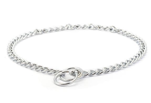 The Ancol Check Chain is a classic and effective tool for perfecting your dogs heel work and maintaining controlparticularly useful when working with strong or wilful dogs. As the dog pulls, the tightening of the chain creates a metal-on-metal sound, which provides an unpleasant yet harmless deterrent, encouraging your dog to walk calmly on the lead. When the dog is walking correctly, the chain remains loose and comfortable.